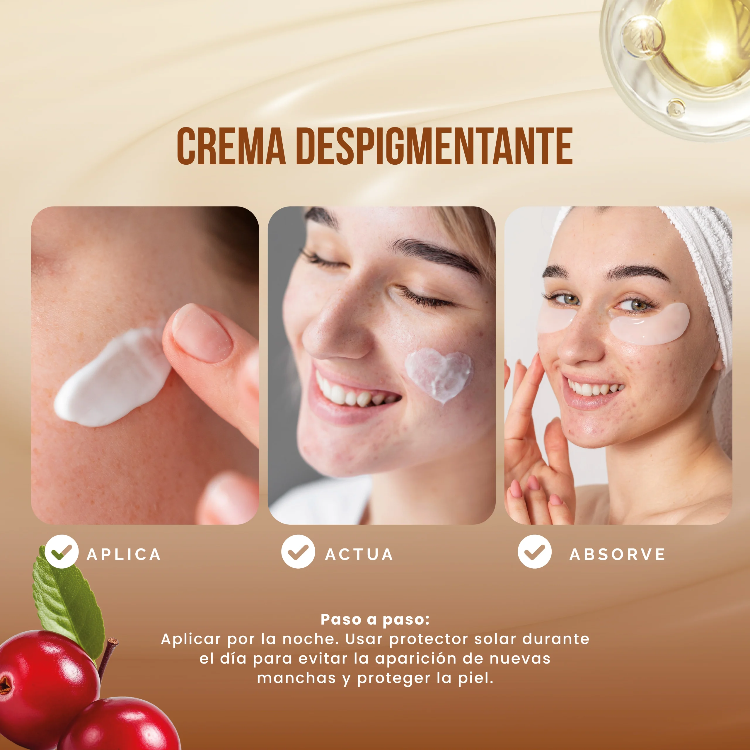 Es tu aliada ideal para combatir la apariencia de manchas oscuras y lograr una piel más uniforme y luminosa. Util para aplicar en rostro, cuello, axilas, codos, rodillas y entre piernas.