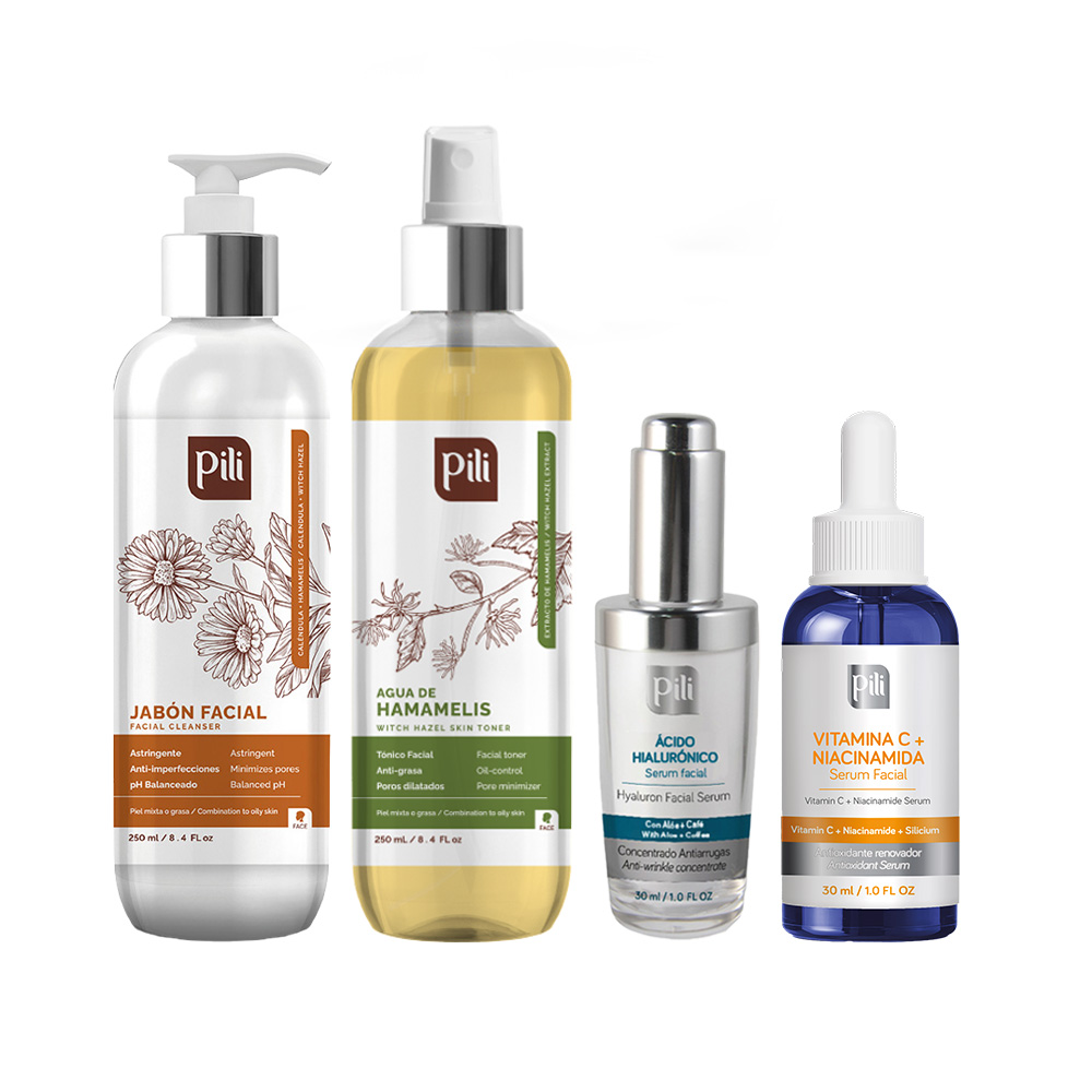Kit ideal para el cuidado diario de piel grasa con limpieza profunda, equilibrio y efecto antioxidante.