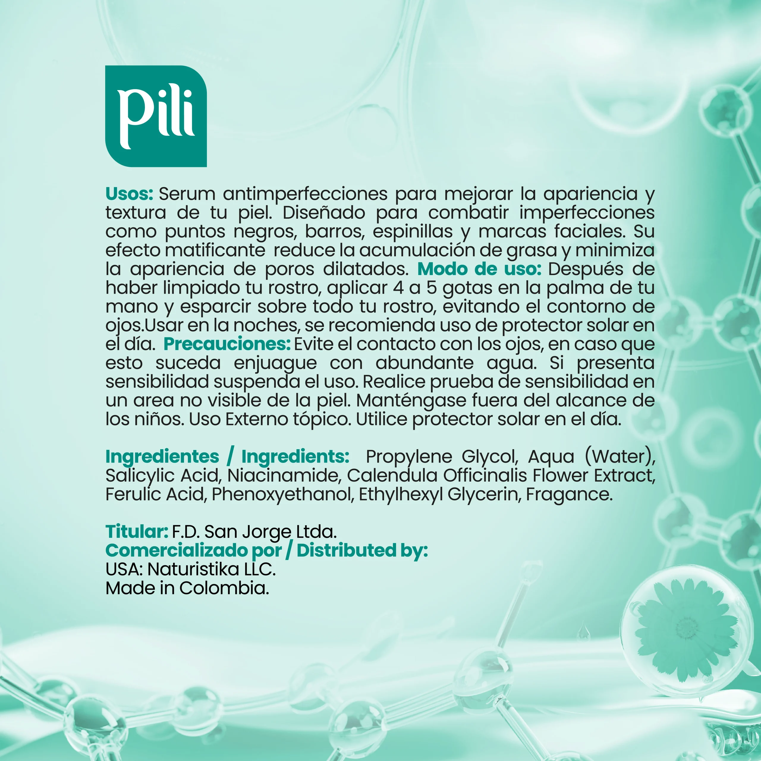 Formulado especialmente para pieles con imperfecciones, este serum actúa sobre las causas subyacentes de la piel grasa y propensa a brotes. El ácido salicílico, un potente agente exfoliante, penetra profundamente en los poros, desobstruyéndolos y eliminando las células muertas que se acumulan en la superficie de la piel. Esto reduce la aparición de barritos y espinillas, previniendo futuros brotes y dejando la piel más limpia y despejada.